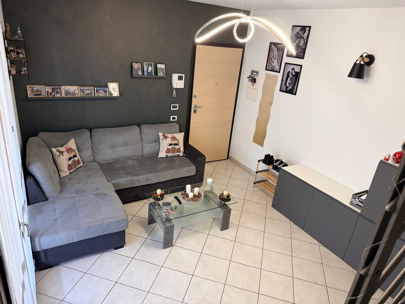Cesano Maderno: All'interno di un complesso residenziale costruito nel 2013, con verde condominiale e ampi parcheggi circostanti, situato al Confine tra Bovisio Masciago e Desio, proponiamo un appartamento su due livelli con terrazzi, box e cantina. L'appartamento si presenta con ingresso, soggiorno, disimpegno, bagno con finestra e cucina abitabile di circa 12 mq, tutti servizi da un terrazzo coperto di circa 20 mq ideale per cene all'aperto e momenti di relax. La scala interna conduce al piano superiore dove si trova la zona sottotetto rifinita in travi in legno e divisa in due locali oltre ad un locale ripostiglio/lavanderia sempre serviti da un altro terrazzo di 20 mq. L'appartamento dispone di riscaldamento a pavimento, videocitofono, predisposizione aria condizionata, antifurto ed è completo di un box singolo e di una cantina. Classe Energetica B 33,90 kWh/m2a. Edilizia Convenzionata. € 197.000 Rif. 1990